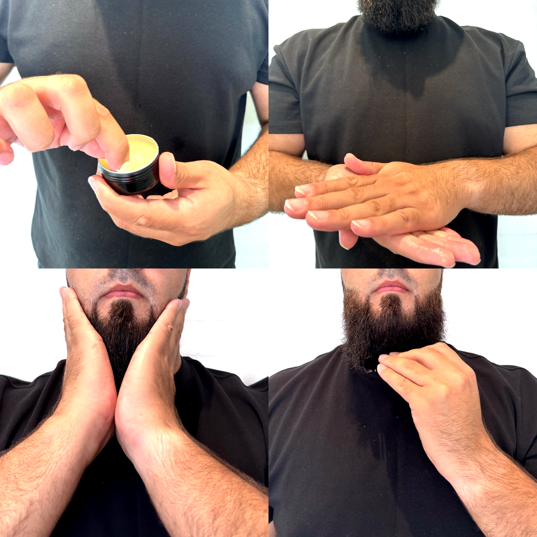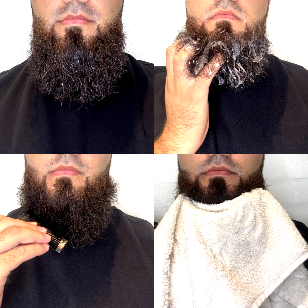 - Massér produktet ind i dit våde skæg, indtil det skummer let