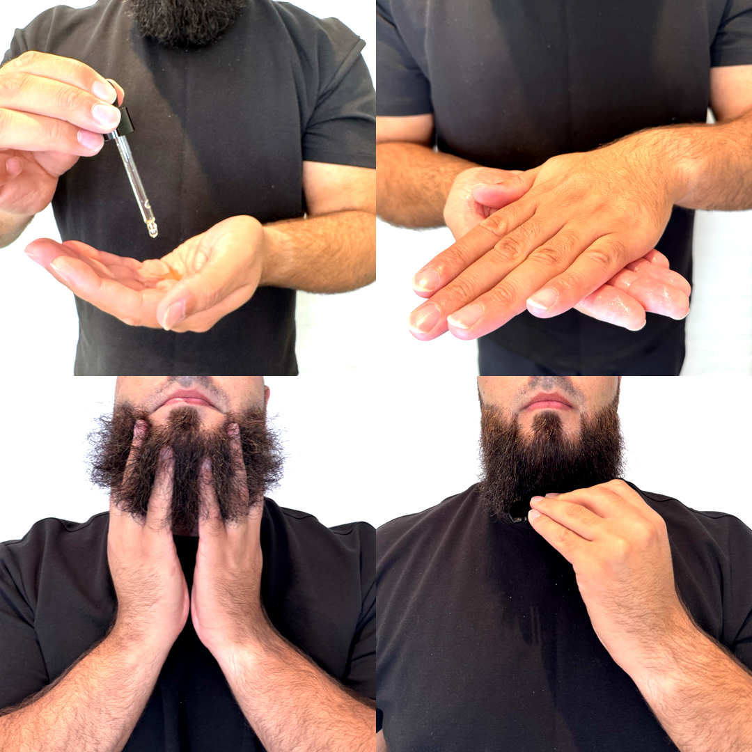 - Fordel olien jævnt i dit skæg of massér forsigtigt ind i både skægget og huden under